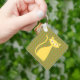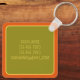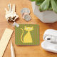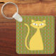 This fun keychain features a bold retro inspired design in shades of orange, olive green and blue with a bright yellow cat. Personalize the back with your choice text. Great for gift bags.