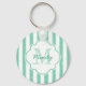 Ajoutez mode et flair à votre style personnel avec ce porte - clé à rayures peintes en vert menthe et blanc. Personnalisez ce design vert pastel mignon et élégant en ajoutant le nom et le monogramme initial de la jeune femme à la mode.