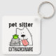 Le design mignon est composé d'un chien, d'un chat et d'un oiseau heureux et attendant leur animal de compagnie préféré. Porte - clé pour animaux de compagnie amusant par S. Fernleaf Designs.