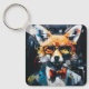 A sharp fox in a suit and glasses, blending vibrant colors and dynamic shapes to capture the essence of sophisticated, quirky elegance.
