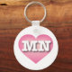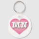 Ce porte - clé est doté d'un coeur rose avec un centre blanchi recouvert de lettres majuscules MN, l'abréviation officielle du Minnesota, l'état étoilé du nord.