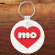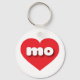Ce porte - clé est doté d'un coeur rouge vif qui contient les lettres en bas coques moelleuses, blanches et arrondies, une abréviation ludique pour Missouri, l'état de show me.