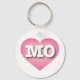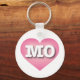 Ce porte - clé présente un coeur rose calme, cool et recueilli avec un centre blanc lavé contenant les lettres coques supérieures blanches en gras MO, l'abréviation officielle de l'état du Missouri, l'état Show Me.