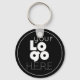the simple template metal keychain makes it easy for anyone to create a personalized minimalist promotional round keyring with a business logo, graphic for other photo. background is solid jet black, great for any full image or transparent png vector graphic in white or light colors. no minimums or costly set up fees.