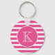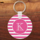 Modern Pink Stripe Monogram Keychain