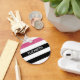 Personnalisez ce porte - clé motif moderne large horizontal noir et blanc rayures avec une bande de parties scintillant rose chaud en ajoutant le nom de n'importe quelle petite fille. Ce motif à rayures graphiques tendance est parfait pour le fashionista chic. Image imprimée plate, PAS de parties scintillant réelle.