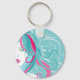 Porte-clés Moderne Pop Art femme Turquoise et rose cheveux