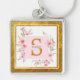 Monogram Initial "S" Floral - Pink Roses & Gold Keychain.