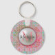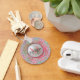 Arlequin en diamant chatoyant motif de rose et de vert sur un fond rose pour le contraste puis une sphère brillante en argent avec le vert et rose fleurit où vous pouvez le personnaliser avec une lettre et un nom pour en faire votre propre. Vibes élégantes.