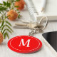 Un porte - clé avec un monogramme blanc sur un arrière - plan rouge. Customisez le porte - clé avec vos initiales ou initiales, couleurs, entre autres options.