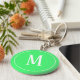 Un porte - clé avec un monogramme blanc sur un arrière - plan vert clair. Customisez le porte - clé avec vos initiales ou initiales, couleurs, entre autres options.