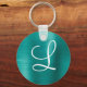 Porte-clés Monogramme blanc Turquoise en métal brossé chic