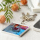 Beau art abstrait avec des couleurs de poussière bleue, orange, rouge et or dans d'élégantes vagues. Une peinture contemporaine moderne en toile de fond pour ce porte - clé. Ajoutez votre monogramme pour un look plus unique.