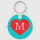 Ce porte - clé a un coeur rouge contenant un monogramme modèle initial sur un arrière - plan bleu. Cliquez sur "Customisez-le!" pour redimensionner/repositionner le coeur rouge. Grande faveur du parti pour les mariages, les fêtes de fiançailles, et les célébrations de Saint-Valentin ou d'anniversaire.
