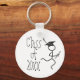 Porte-clés de fin d'études pour les coureurs ! Un diplômé en course à pied humoristique © tenant un diplôme avec la houppette du diplômé qui flotte au vent. Cadeau de fin d'études amusant pour le diplômé coureur !