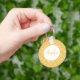 Donnez à votre style personnel un coup de pouce moderne avec ce porte - clé motif monogramme élégant rayures avec coeur et cercles jaunes et blancs girly. Personnalisez en ajoutant votre nom et votre initiale monogrammée au cadre cercle tendance.