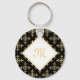 Un luxueux porte - clé à motifs floraux quatre points noir et or qui peut être personnalisé en ajoutant votre monogramme. Ce design vintage monogrammed damask élégant vous fera découvrir votre côté sophistiqué. Impression plane, pas métallique.