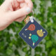 Créez un cadeau personnalisé pour votre joueur de padel préféré. Ce porte - clé présente des illustrations de raquettes et de boules de padel dans les tons de terre cuite, d'or et de turquoise contre un arrière - plan bleu marine. Il est prêt à être personnalisé avec des initiales monogrammes en crème.