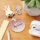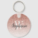 Ce keyring chic présente un arrière - plan parties scintillant à l'ombre d'or rose. Customisez-le avec votre initiale en police serif blanche et votre nom en script de brosse gris foncé de style écriture manuscrite.