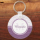 Porte-clés Monogramme de Pois mod violet et blanc avec nom