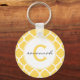 Motif en quatrefoil jaune et blanc avec monogramme.