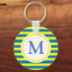 Porte-clés Monogramme de rayures jaune et bleu vif