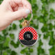 porte - clé de bouton rouge et noir élégant avec votre monogramme et les coeurs blancs en motif pois