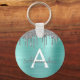 Chaîne de clés élégante en acier inoxydable fausse sarcelle aqua bleu et argent ombré pastel arc-en-ciel métallisé et pailleté. Ces porte-clés peuvent être personnalisés pour inclure votre initiale et votre prénom. Ces porte-clés font de grands cadeaux ou faveurs pour un anniversaire de 16 ans, une douche de mariée, un mariage ou une soirée de bachelorette.
