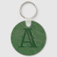 Ce design porte - clé personnalisé pour hommes présente un arrière - plan de texture en cuir faux vert avec une initiale monogrammée que vous pouvez personnaliser. Conçu par un artiste de renommée mondiale ©Tim Coffey.