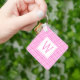 Porte-clés Monogramme En vichy plaid rose et blanc