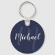 Porte-clés Monogramme et nom personnalisé moderne Navy Blue