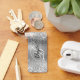 Elégante parties scintillant en argent avec éclat contre une image graphique en feuille de métal brossé gris clair. On peut customiser le monogramme de calligraphie fantaisie noir et blanc au centre. Tous les éléments brillants et brillants de ce design girly moderne sont des graphismes numériques. Une précieuse fête de porte - clé monogrammée favorise sa fête d'anniversaire spéciale. Une taille agréable pour la bague de clé d'un employé.
