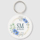 Porte-clés Monogramme floral personnalisé Fleurs bleues sauva