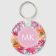 Sonnerie à clé fillette avec monogramme avec motif aquarelle et monogramme rose et blanc.