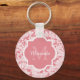 Porte-clés Monogramme Floral Rose Lumière Moderne Avec Nom