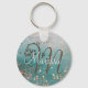 Porte-clés Monogramme Gold Stars sur bouton Turquoise