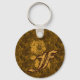 Porte-clés Monogramme Initiale F Fleur de Pivoine en Or
