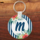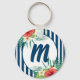 Porte-clés Monogramme moderne à rayures et fleurs bleues