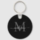 Monogramme noir blanc simple Élégant Porte - clé de script moderne