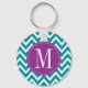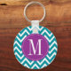 Porte-clés Monogramme personnalisé pourpre et bleu Chevron