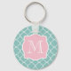 Un motif à feuille de quatrefoil blanc est sur un arrière - plan vert en mousse légère et presque marine. Le centre dispose d'un cadre en monogramme rose poudré, léger et personnalisable qui complète joliment la couleur verte.