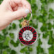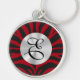 Grand porte - clé rond haut de gamme avec une image d'imprimé zèbre rouge et noir et un cercle argenté brillant avec un monogramme personnalisable. Voir l'ensemble de la collection de Porte - clés canadiens dans les TOUCHES SPÉCIALES | Section Favoris.