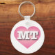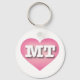 Ce porte - clé présente un coeur rose collé, calme et cool, avec un centre lavé blanc contenant les lettres coques MT, en haut, gras et blanc, l'abréviation officielle pour Montana, l'état trésor.