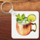 Un cocktail moscovite Mule servi dans une tasse en cuivre avec de la glace, de la chaux et des feuilles à la menthe, idéal pour une boisson cool l'été.