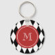 Porte-clés Motif Arlequin blanc noir, Monogramme rouge