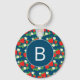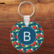 Porte-clés Motif bleu fraise et fleur Monogramme