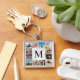 Create your own personalized 12 photo collage keychain with your custom images and monogram on a stylish elegant white marble background.