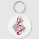Pink treble clef with delicate, detailed pink Japanese cherry blossoms against white background painted over with light blue paint Blooming pink sakura.