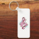 Pink treble clef with delicate, detailed pink Japanese cherry blossoms against white background painted over with light blue paint Blooming pink sakura.