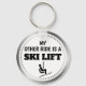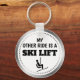 My other Ride est un Ski Lift en majuscules noires en police mixte avec une image d'icône d'une personne sur un téléski. Arrière - plan blanc et gris argenté à deux tons.